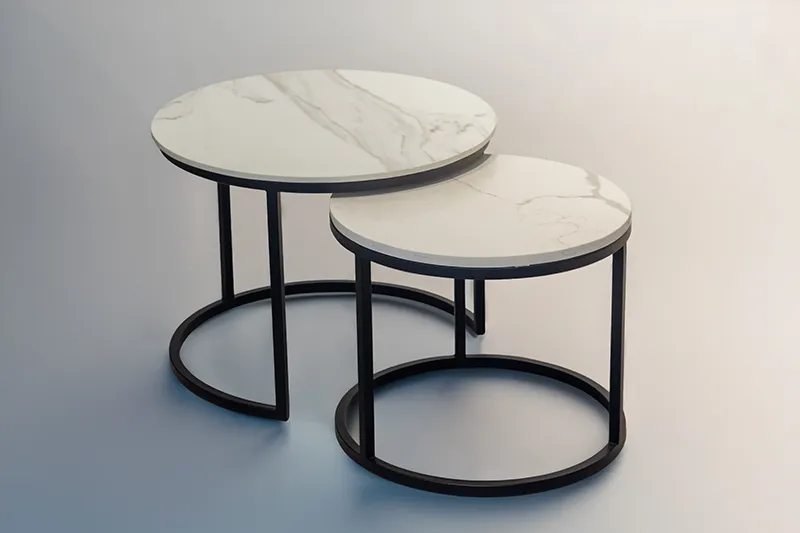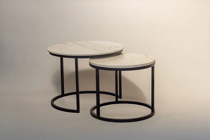 MESA DE CENTRO BASE HIERRO Y TAPAS EN PIEDRA SINTERIZADA