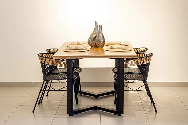 MESA DE COMEDOR CON BASE EN HIERRO CH3