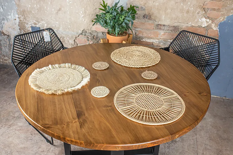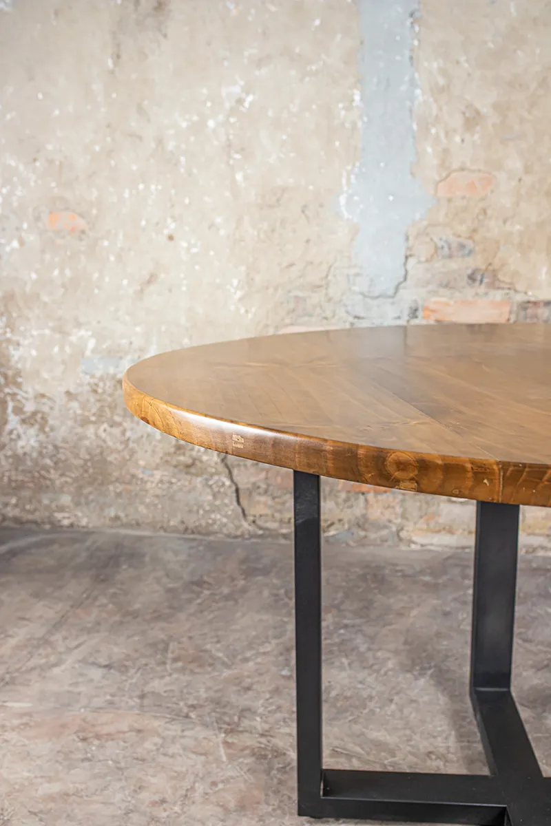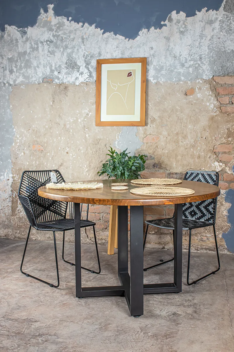 MESA COMEDOR CON TAPA REDONDA EN MADERA (ROBLE, PINO O TECA) BASE EN HIERRO CON PINTURA ELECTROSTATICA
