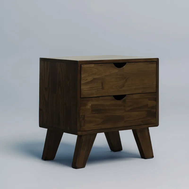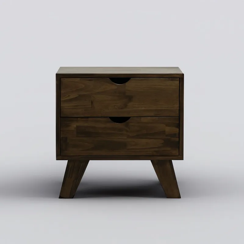 MESA DE NOCHE LUNA DOS CAJONES (SE FABRICA EN MADERA PINO, ROBLE O TECA)