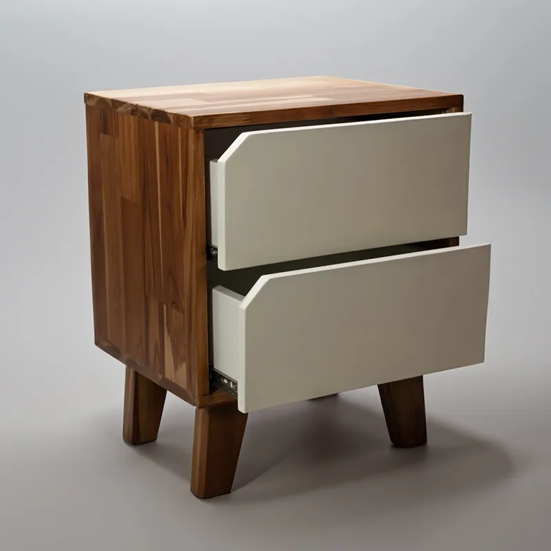 MESA DE NOCHE NOVA DOS CAJONES (SE FABRICA EN MADERA PINO, ROBLE O TECA)