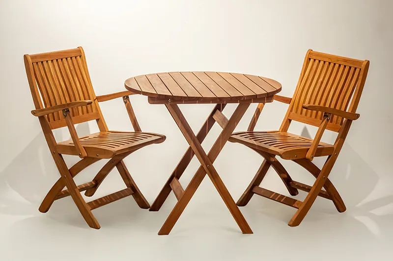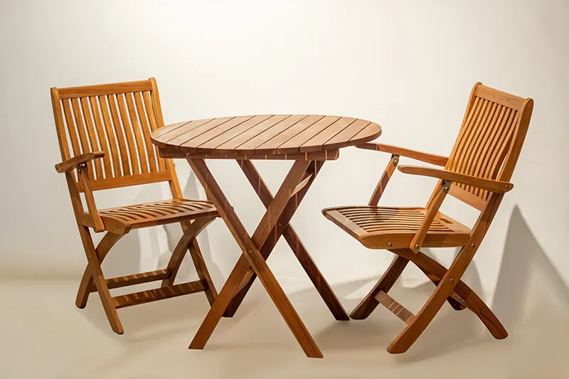 SILLAS EN MADERA TECA PARA EXTERIOR SET DE DOS SILLAS MAS MESA